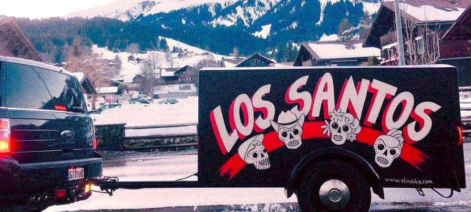 Los Santos-Schriftzug , Entwurf und Lackierung auf Transport-Anhänger, 2018
