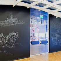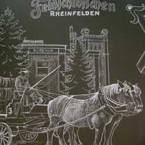 Im Restaurant Feldschlössli sowie in der Besucherkantine der Brauerei gestaltete ich die Wände mit dauerhaften Kreide-Wandzeichnungen mit historischen Motiven.