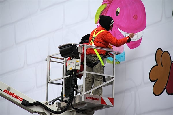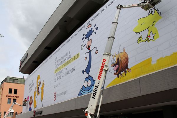 Lifepainting auf die Fassade des Kaufhaus Breuninger während des Internationalen Trickfilmfestivals Stuttgart 2016